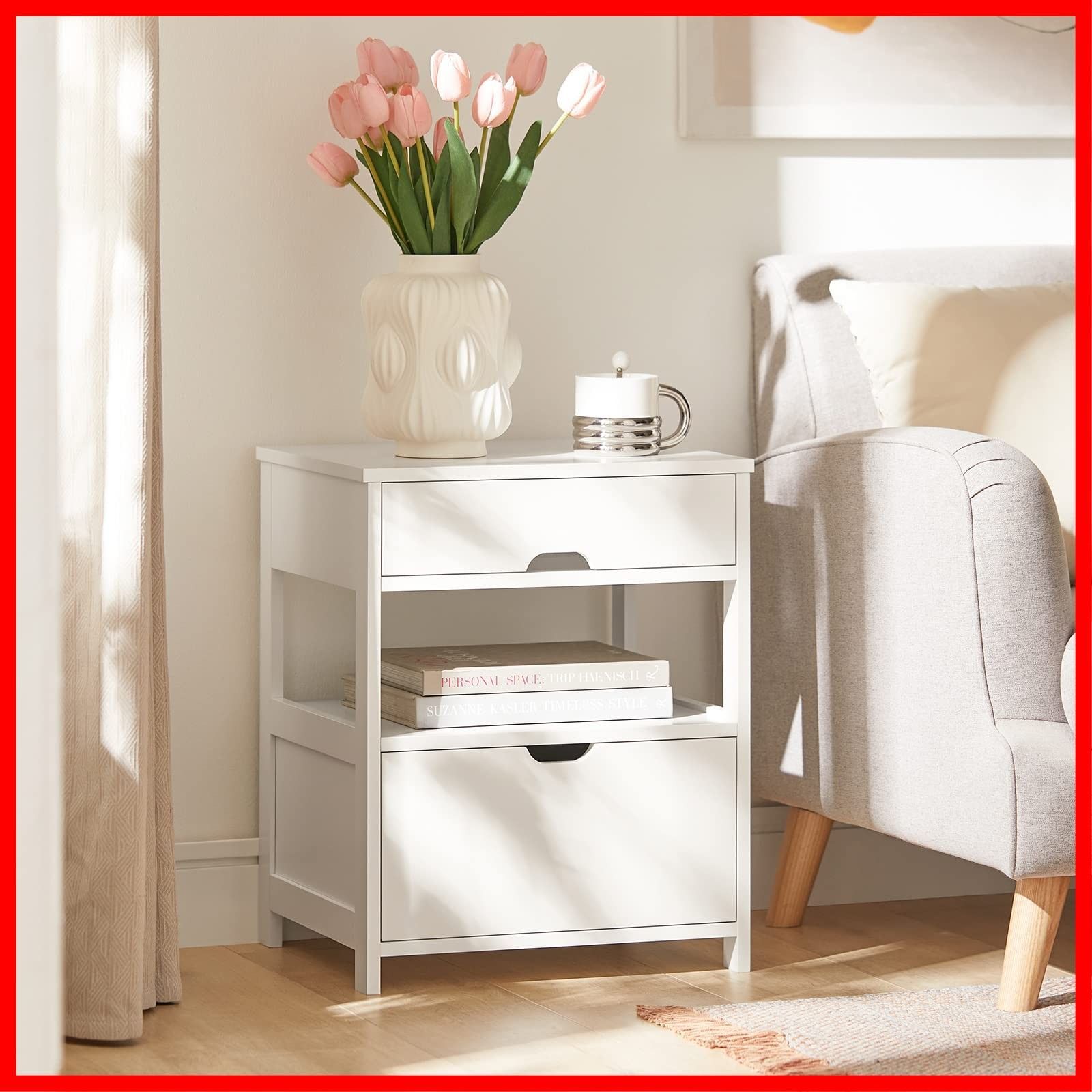 ベッドサイドテーブル ナイトテーブル ベッド横 テーブル 幅45×奥行き37.5×高さ55cm おしゃれ 北欧 電話台 サイドチェスト ベッドテーブル ベッドサイド 収納(FRG258-W/ホワイト)