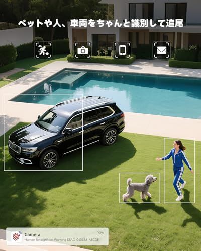 2? 【AI人物・車両・動物検知&即時通知】 最新AI技術で人・車・動物を高精度に識別。不要な誤検知を減らし、必要な時だけアラートを送信します。不審な動きを検知すると自動で3枚の写真を撮影し、Eメールや「Ctronics Pro」アプリを通じてスマホにリアルタイム通知。