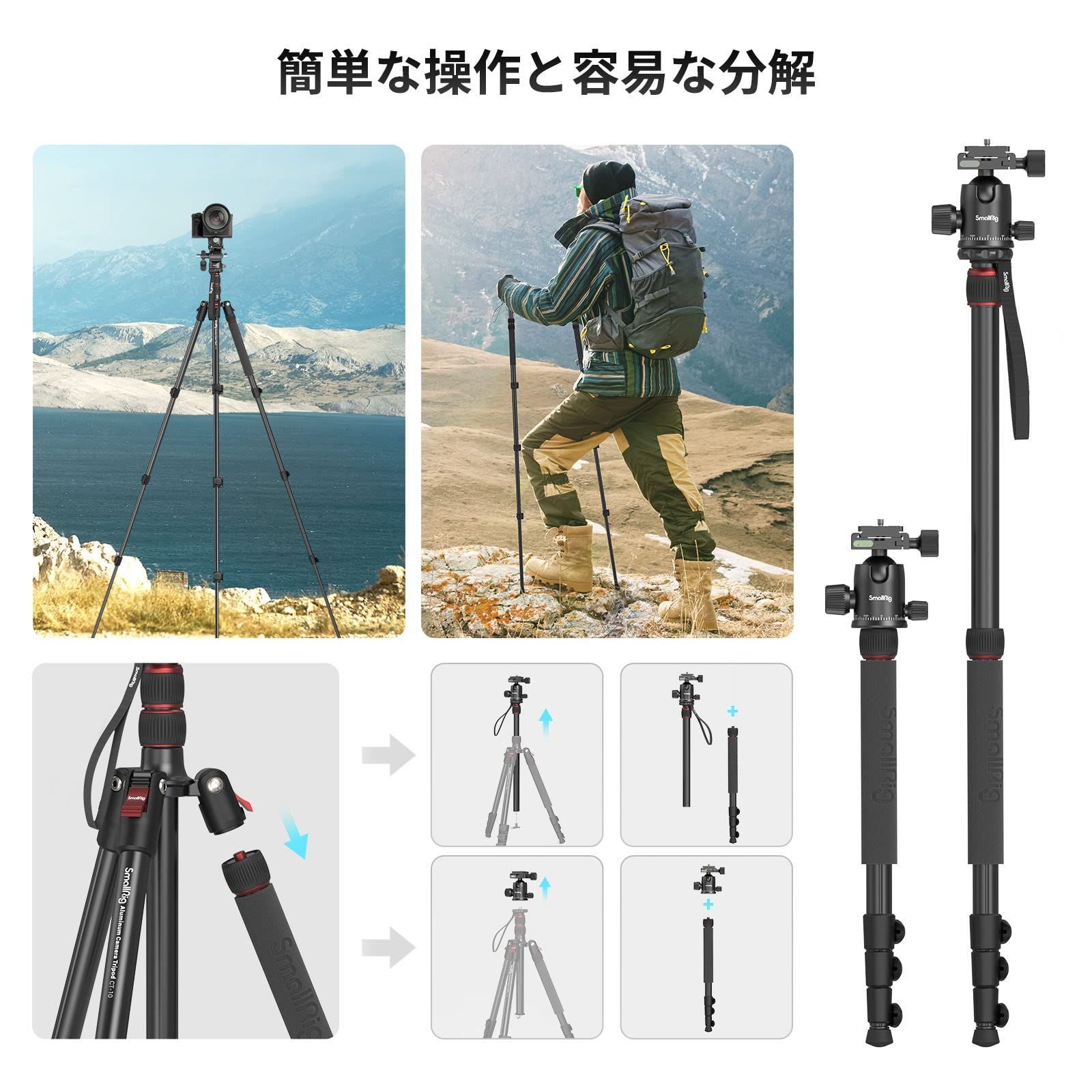 SmallRig カメラ用三脚 全高180cm 一脚可変式 360°自由雲台付き クイックシュー式三脚 コンパクト アルミ製 耐荷重15kg 4段調整 中心軸反転可能 スマホクリップ付き-3935