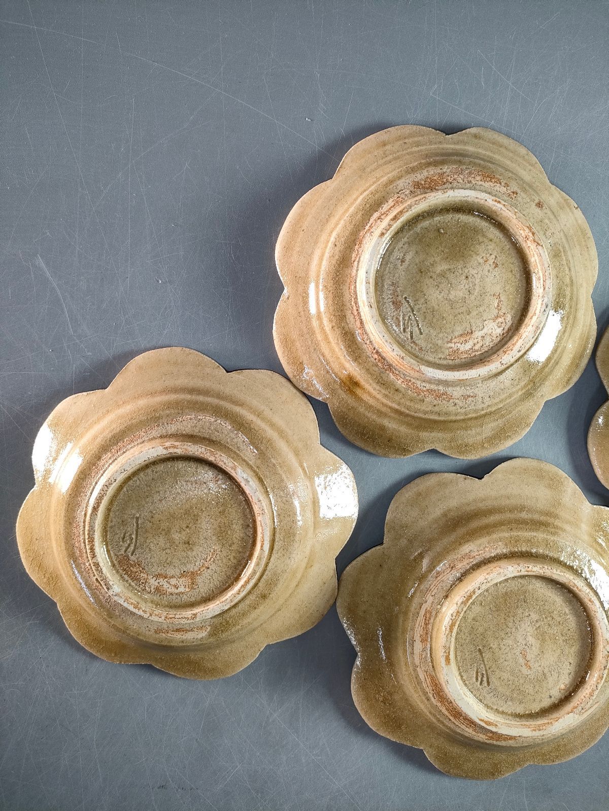 S 10 1 紅日苑窯 小野恵子 黄瀬戸蜂文向付4客 菊文向付2客 織部向付3客