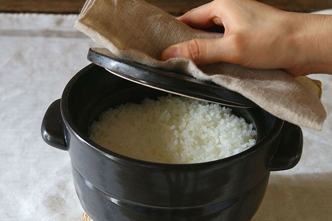 かもしか道具店のごはんの鍋3合。1合でかるくお茶碗3杯分です。黒は白いご飯を引き立てます。