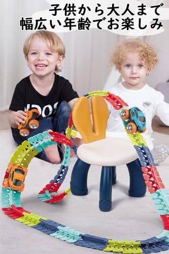 【レールの上を走る車おもちゃ】車はレールの上を走ることができ、レールは曲げたり、スナップしたりして、さまざまな形に変形することができます。屋内はもちろん、屋外スペースをDIYのトラックコースに変え、そびえ立つトラックや360ループを構築して車を走らせて遊べます。