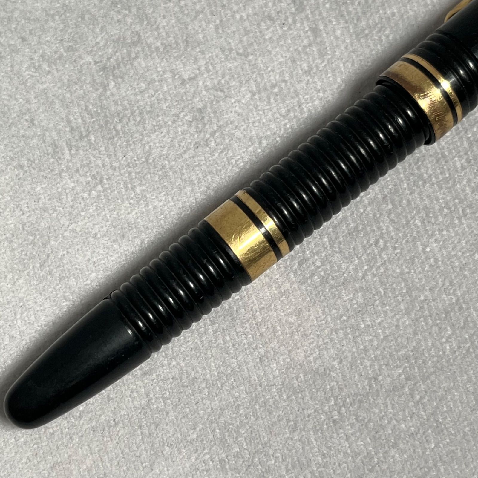 ブラックカラーのリブ(ギャザー)軸で、ペン先には14K刻印が確認できます。
