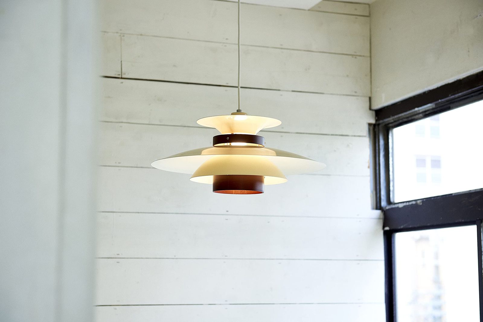 【使用シーン】 ダイニングでは重ねたセードからこぼれるあたたかな光がテーブルの上の料理を美味しく演出し、天井にも広がる光はリビングを和やかに演出します。コードの長さを調節することができるので、テーブルやソファの高さに合わせたスタイリングが可能です。ナチュラル、ブラウン、ウォールナットの3つのカラーバリエーションは様々なインテリアにフィットします。