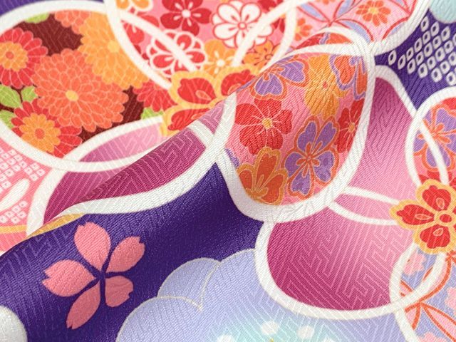 七五三 7歳 女の子用 四つ身の着物と結び帯 他 コーディネート フルセット 紫 古典桜 OYM A 803 f 2003 KZZ