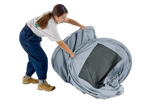 【簡単設営】 パッと開くだけで簡単に設営できるポップアップ式サンシェードです。 ワイヤー内蔵のため、ポール(骨組み)を組み立てる手間が無く、撤収も慣れれば簡単です。軽量で持ち運びやすいのもうれしいポイントです。