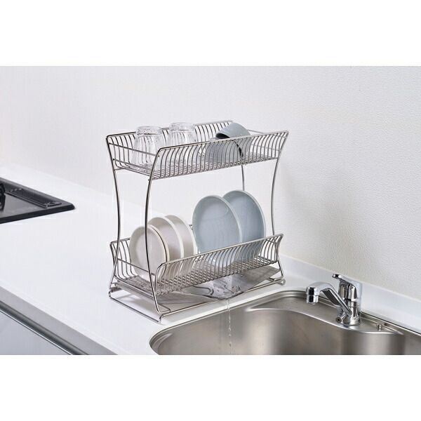 サスティナ 18 8ステンレス製水切りラック2段スリム スライド式