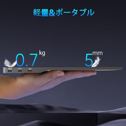 【薄型・軽量・持ち運び便利】ポータブルモニターは重量700g、最薄部5mmというスリムデザインで、旅行バッグにも簡単に収納できます。旅行や出張にも最適です。