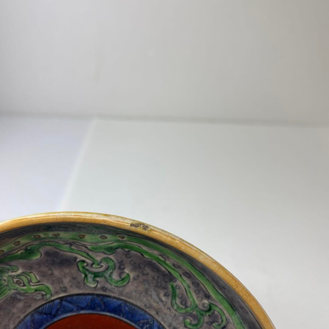 江戸後期 青九谷 龍図 中皿 直径12 5㎝トヒチサ東な7 0107 2 F