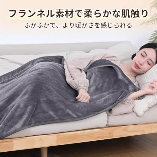 MOSMEE 電気掛け毛布 電気毛布 電気ひざ掛け 膝掛け 電気ブランケット 掛け敷き 電気シーツ 洗える ダニ退治 頭寒足熱配線 省エネ 3分速暖 タイマー付き フランネル ダークグレー 140 80 cm 2 d 935400