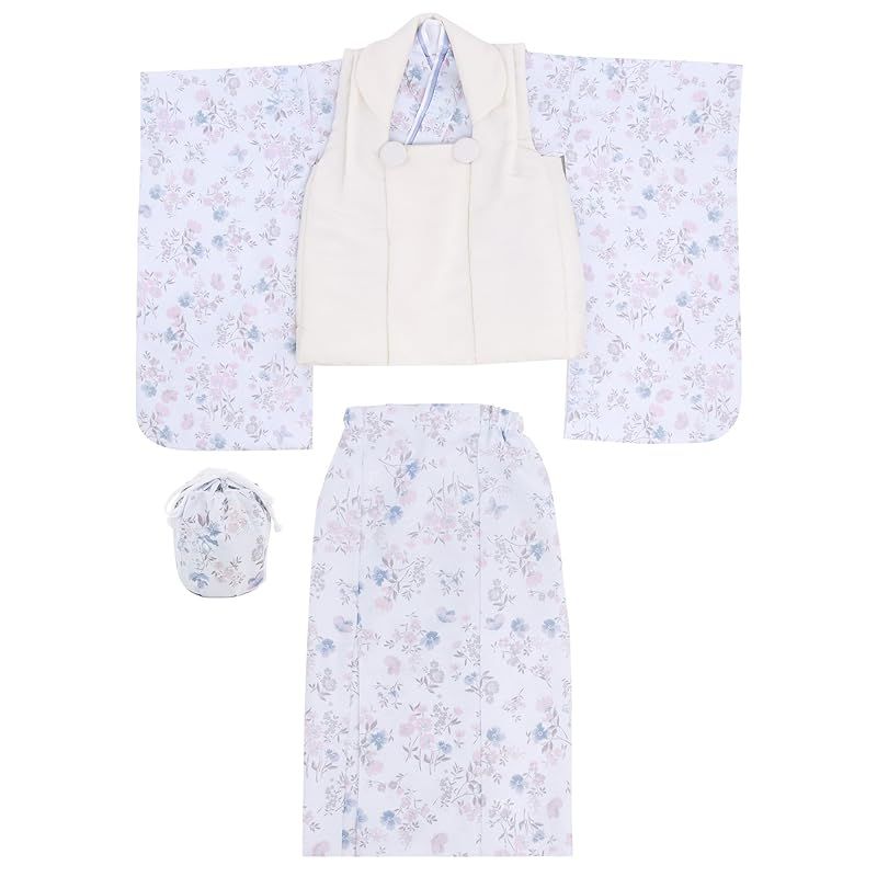 KYOETSU キョウエツ 自宅で簡単着付け 七五三 3歳 女の子 着物 セパレート 二部式 セット 被布 小物 フルセット 753 4点セット くすみ 8 蒼の花夢 90 100 cm 1