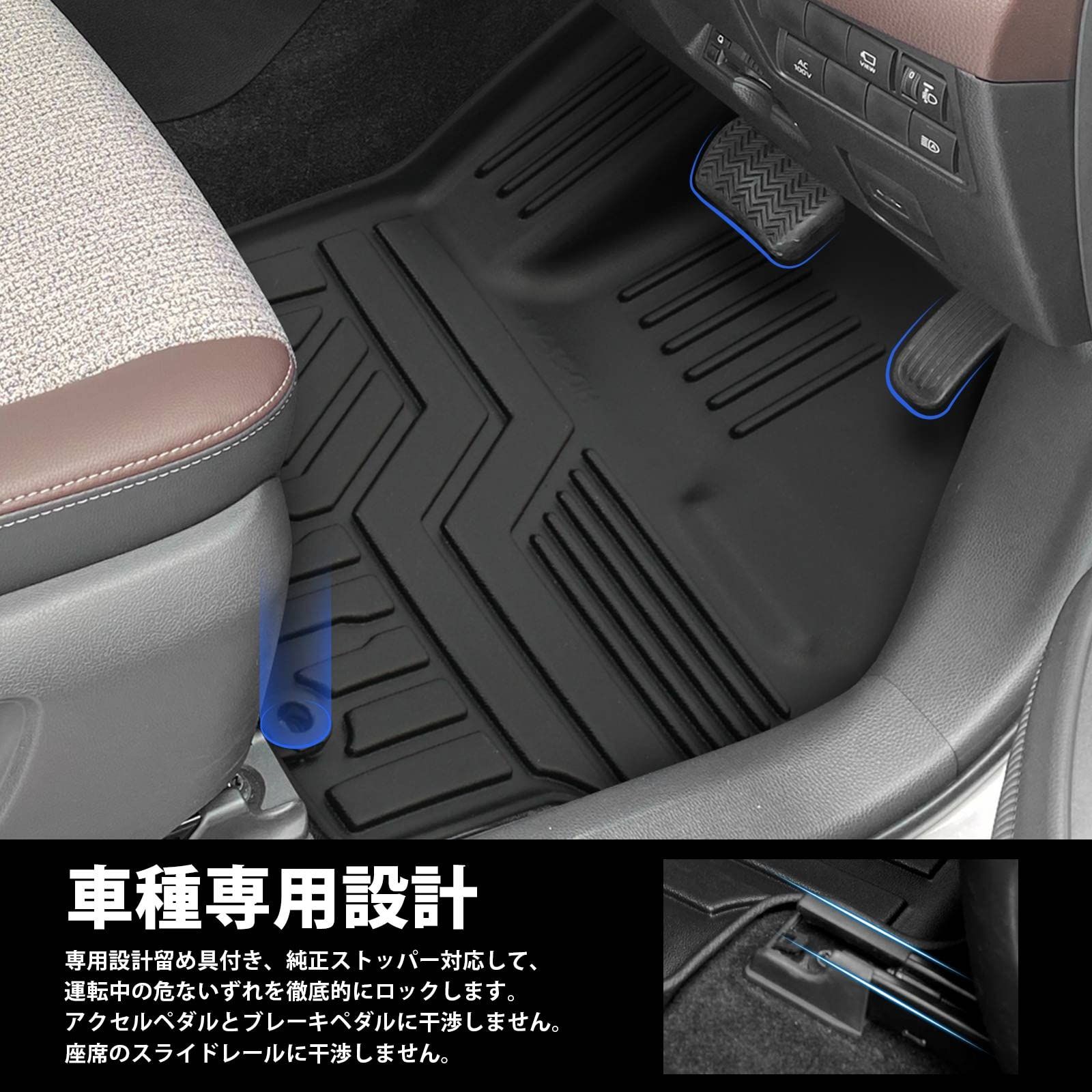【車種専用設計・取付簡単】専用留め具部品デザイン、純正ストッパー対応して、運転中の危険なズレを徹底的に防ぎ、運転の安全性を高めます!車内に隙間なくフィットします。アクセルペダルとブレーキペダルに干渉しません。座席のスライドレールにも干渉しません。取付は面倒なネジや両面テープなど一切不要、到着したすぐに取付できます。