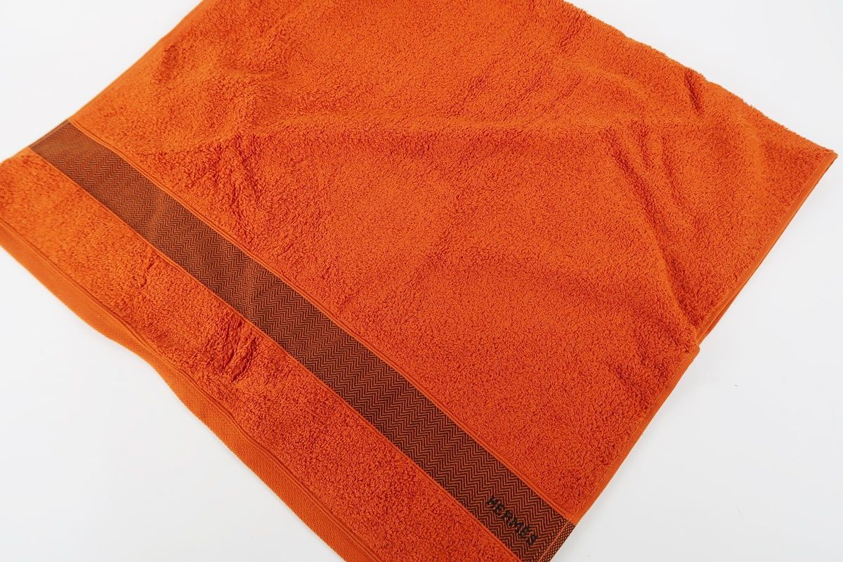 【新品・未使用】HERMES エルメス ゲストタオル ハンドタオル 約97×52㎝ オレンジ系 綿100% ブランド小物【PD82】
