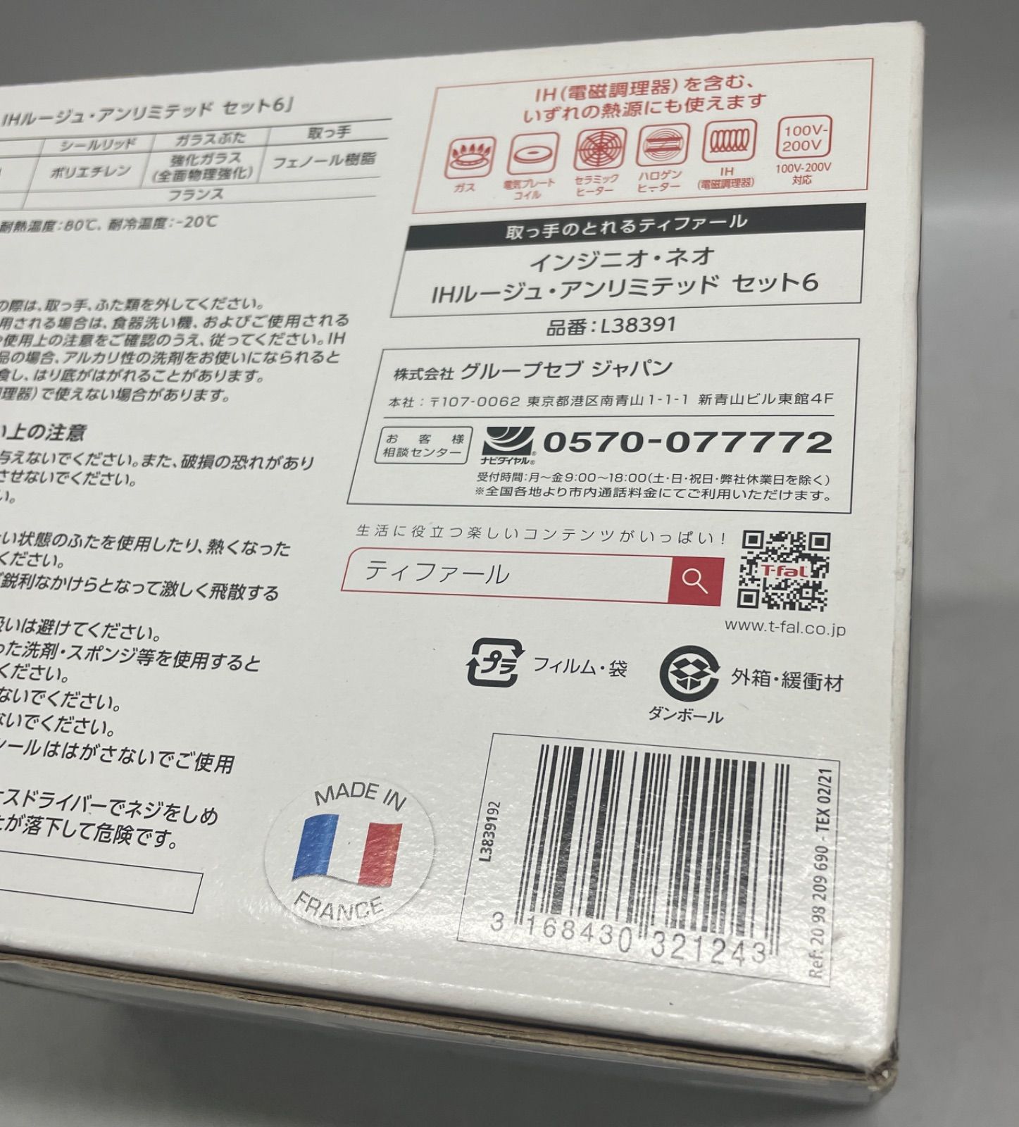 T fal インジニオ ネオ IH ルージュ アンリミテッド セット6 L 38391 ガス対応 箱 ティファール