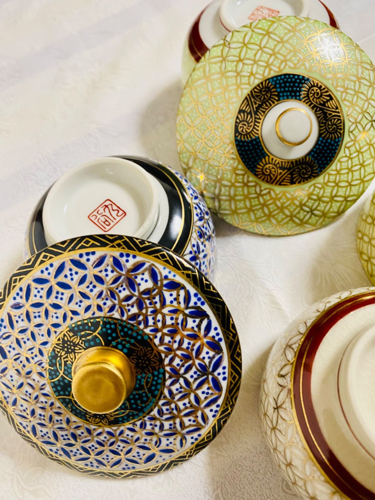 九谷焼の蓋付き湯呑み7脚セットとなります☆