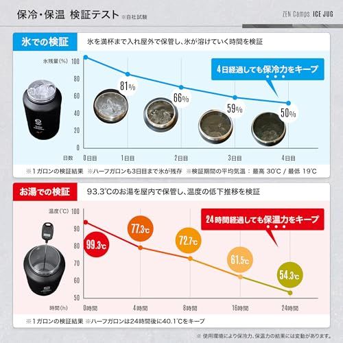 ZEN Camps アイスジャグ アイスコンテナ 保冷 保温 キャンプ アウトドア 真空断熱構造 1 9 L 3 8 口広 ハーフガロン m 28 f de 4 a