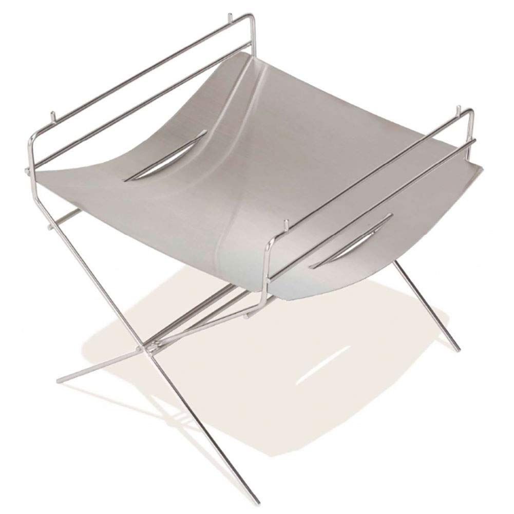 軽量でコンパクトになる焚き火台。2つの脚を組み合わせ受板をはめるだけの簡単組み立て。焼網も付属しており4人ぐらいのバーベキューでも使用可能。受板は一枚のステンレス板で灰処理や掃除が楽にできます。湾曲したところを空気が通り燃焼を助けます。