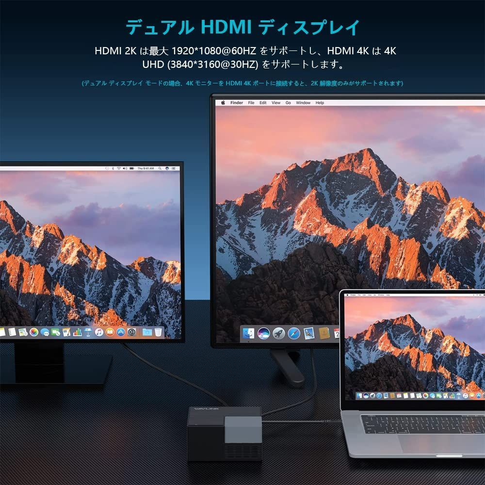 デュアルHDMI type cポート RJ 45 10 in 1 ethernet 100 W電源伝送 usb cドッキングステーション 4つのUSBポート オーディオ入出力 Mac Windows Thunderbolt WAVLINK 3および4