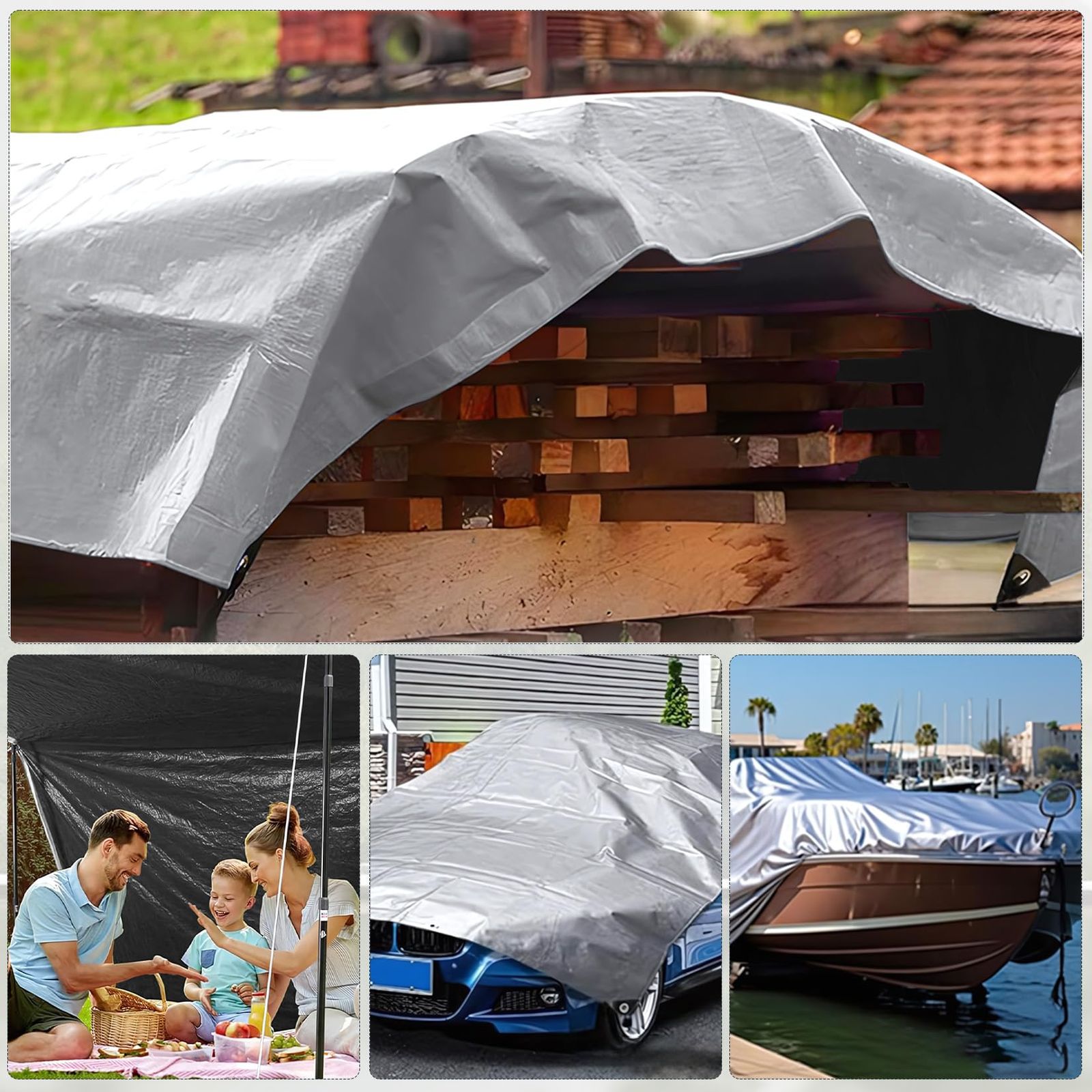 【改良モデル 220g/m2 厚手生地】防雨シート シルバー 防水 UVシート 屋根 カバー 庭 両面防水 UVカット 遮光 保護 水害対策 豪雨対策 防雪 防災 厚手 耐久性 5.8mx7.8m