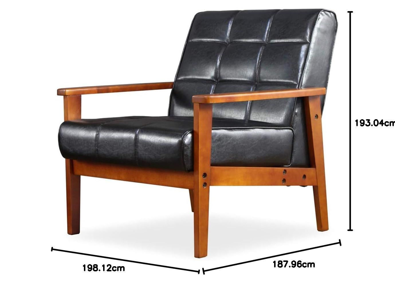 岩附 ソファ 1人掛け レザー 合皮 肘付き 天然木脚 幅74 cm 黒 ブラック レトロモダン ヴィンテージ IW 72 1 P
