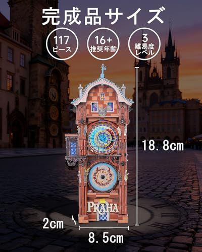 精密モデル: プラハの有名な天文時計を再現した精巧な金属製3Dパズル。細部まで美しく作り込まれたデザイン