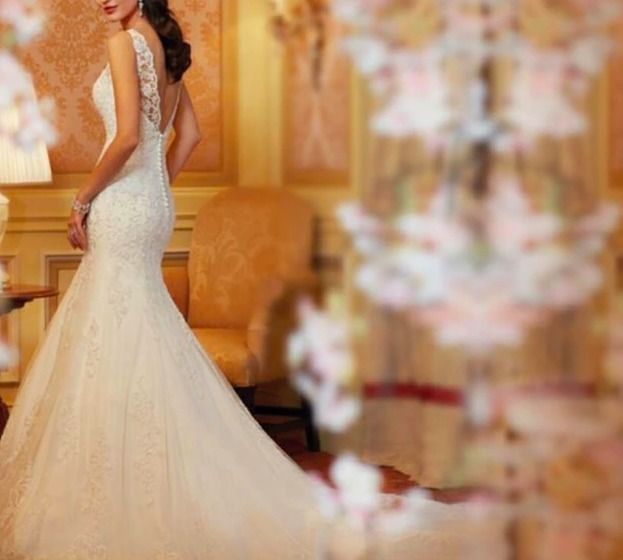 ロング ウェディングドレス マーメイド 花柄レース ノースリーブ