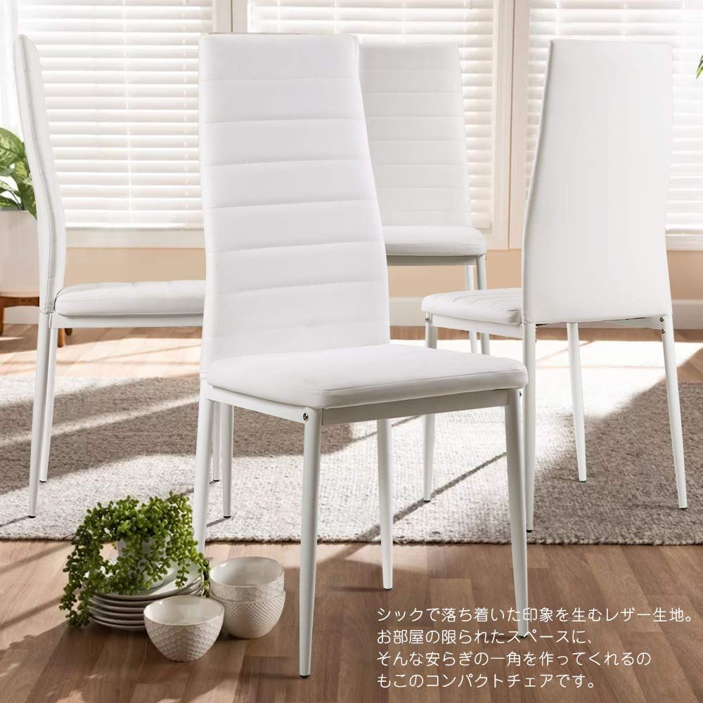 【商品仕様】 ? 材質:座面・背もたれ/張り材:合成皮革(PUレザー) 内材:ウレタンフォーム 脚部:スチール(ラッカー塗装) ? 重量:約4.2kg ? サイズ:幅40cm × 奥行39.5cm × 高さ96cm ? 座面高:床から座面まで約45cm ? 耐荷重:約100kg ? ご注意:実寸サイズのため、若干の誤差が生じる場合があります。 【お手入れラクラク!PUレザー仕様】 座面には高品質のPUレザーを採用。汚れに強く、飲み物をこぼしてもサッと拭くだけで清潔をキープできます。耐久性にも優れており、長く快適にお使いいただけます。レザーならではのなめらかな手触りを楽しみたい方にもおすすめです。 【軽量&コンパクト設計】 わずか4.2kgの軽量設計で、女性の方でもラクに持ち運びが可能。お掃除や模様替えの際もスムーズに移動できます。必要な場所へサッと動かせるので、お部屋のレイアウト変更も気軽に楽しめます。 【シンプルデザインでどんな空間にも◎】 無駄のない洗練されたデザインは、どんなインテリアにも溶け込みます。 ?? ご自宅:キッチン、リビング、寝室 ?? オフィス:会議室、待合室、休憩スペース ?? 商業施設:カフェ、食堂、サロン、公共施設 など さまざまなシーンで活躍する万能チェアです。 【ご注意事項】 ?? 組立式(1人で約20分程度) ?? 写真の色味は光の加減で実物と異なる場合があります。予めご了承ください。 スタイリッシュで使いやすいチェアで、お部屋をもっと快適に!?