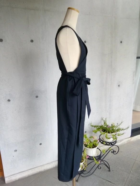 4 L 6 マットストレッチツイル 濃紺 茶道お稽古用エプロン羽織って着るウエストリボン127100 21 2