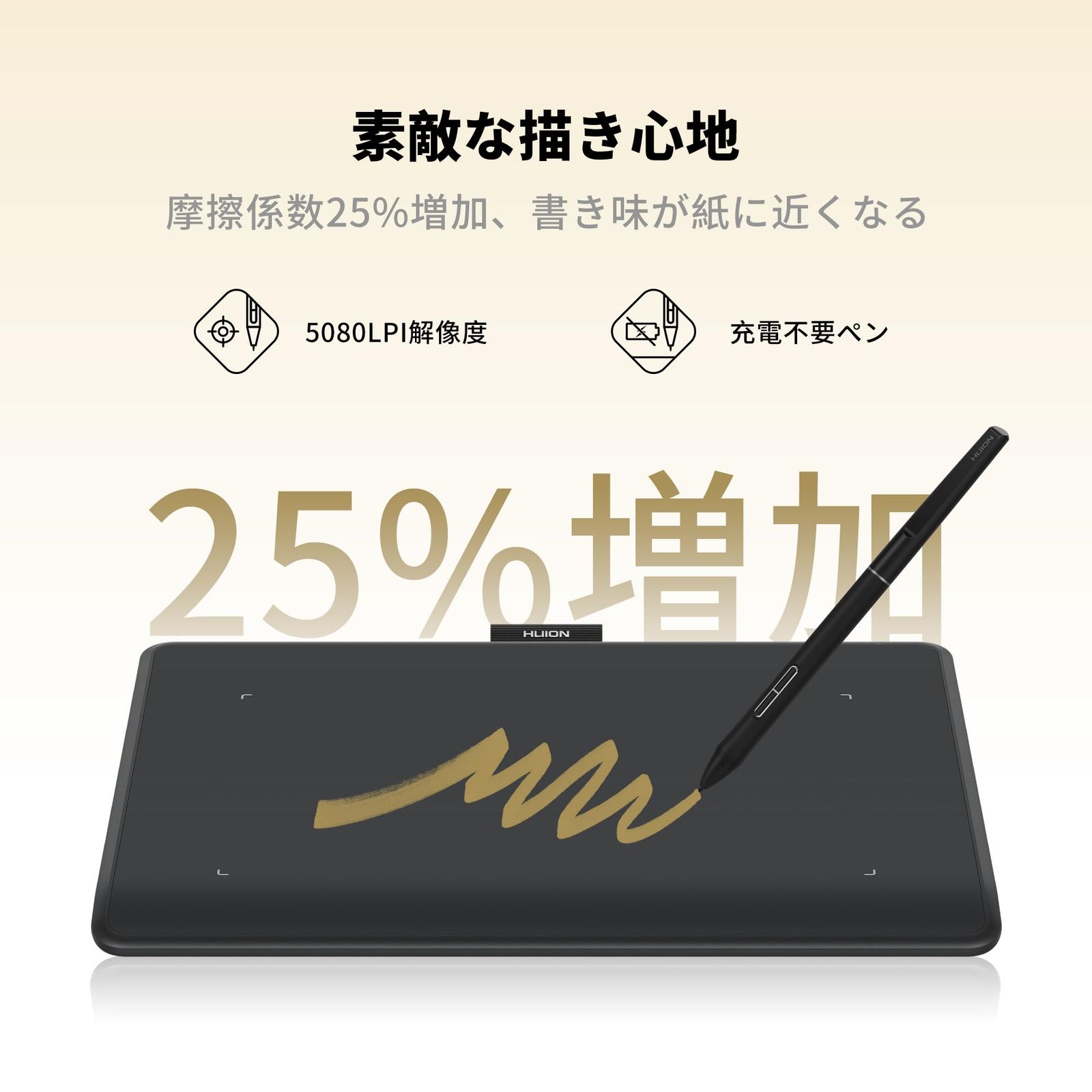 【素敵な描き心地】書き味が紙に近くなるよう、作業領域に特殊な表面加工を施しました。描き心地の良い摩擦感を実現しました。
