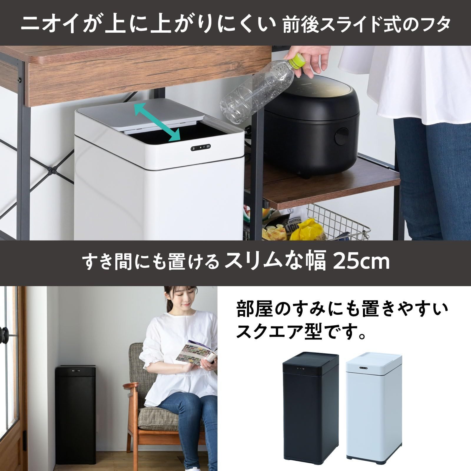 ニオイがもれにくいスライド開閉式