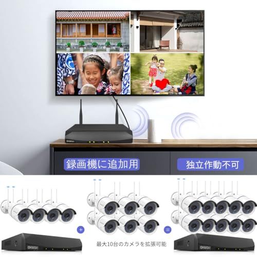 {業界で唯一本物のダブルアンテナ} ワイヤレス 防犯カメラですので、OHWOAIのワイヤレス本体に追加して、連動できるようになります。この防犯カメラ本体は業界で本当のダブルアンテナチップを採用し、シングルアンテナより、ワイヤレス信号伝送距離は55%向上させます。安定な信号に接続し、頻繁に連絡が中断することを避け、ほとんど遅延がなくスムーズに動いています。