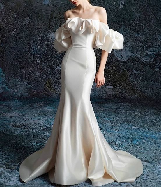 ボリュームフリル ウェディングドレス マーメイド エレガント
