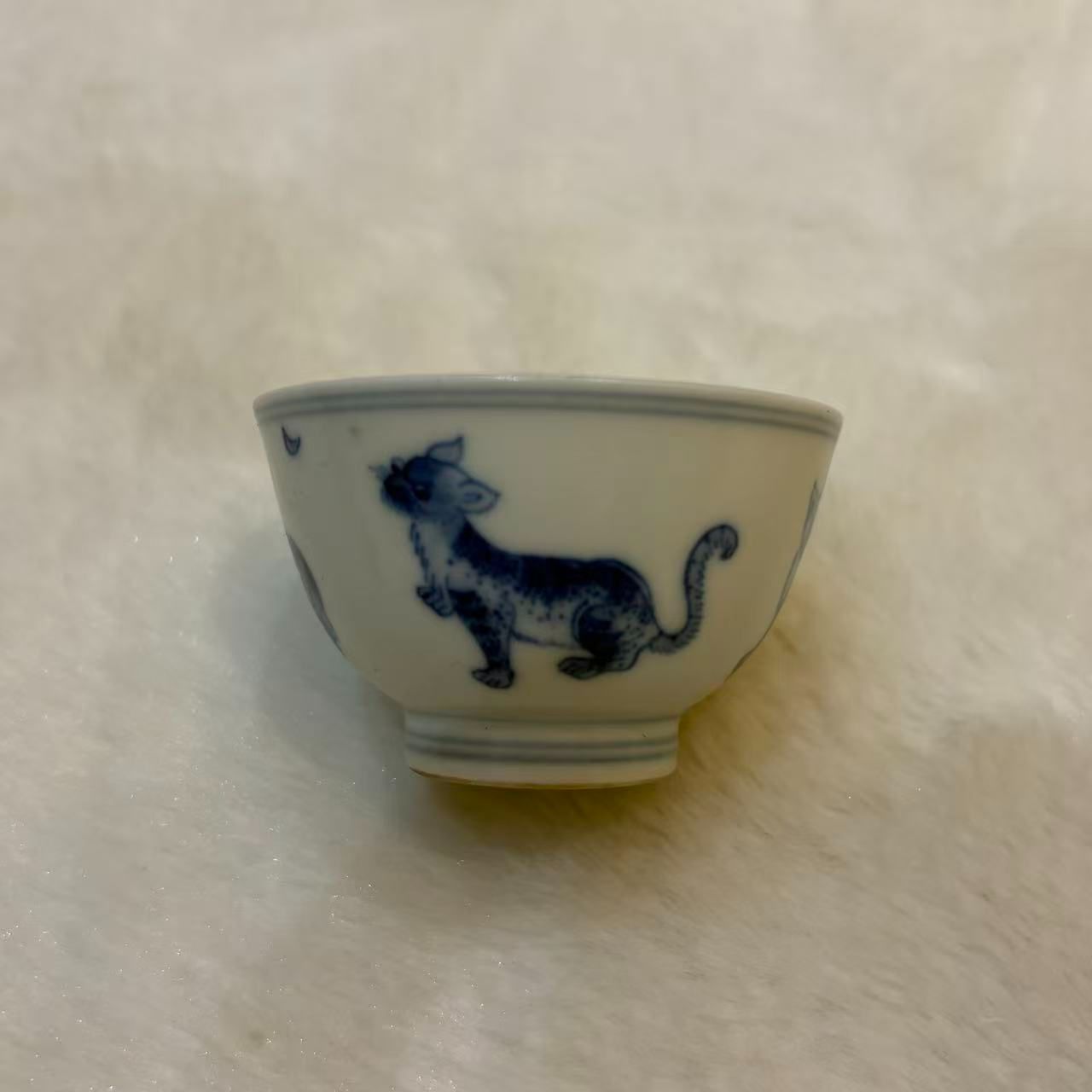 大明嘉靖年製 陶磁器 陶磁製 青磁 猫柄 徳利 盃 とっくり カップ 藍色 口径 約5 8 cm 高さ 約3 4 き