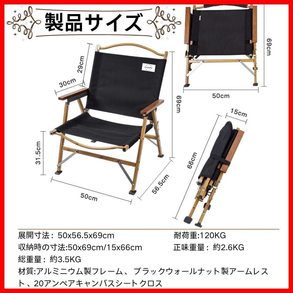 椅子耐荷重120 kg 軽量折りウォールナットキャンプ シート高31 5 cm ローチェアアルミ ベルクロ付きコンパクトアウトドアローチェア ブラック Simplemeキャンプ