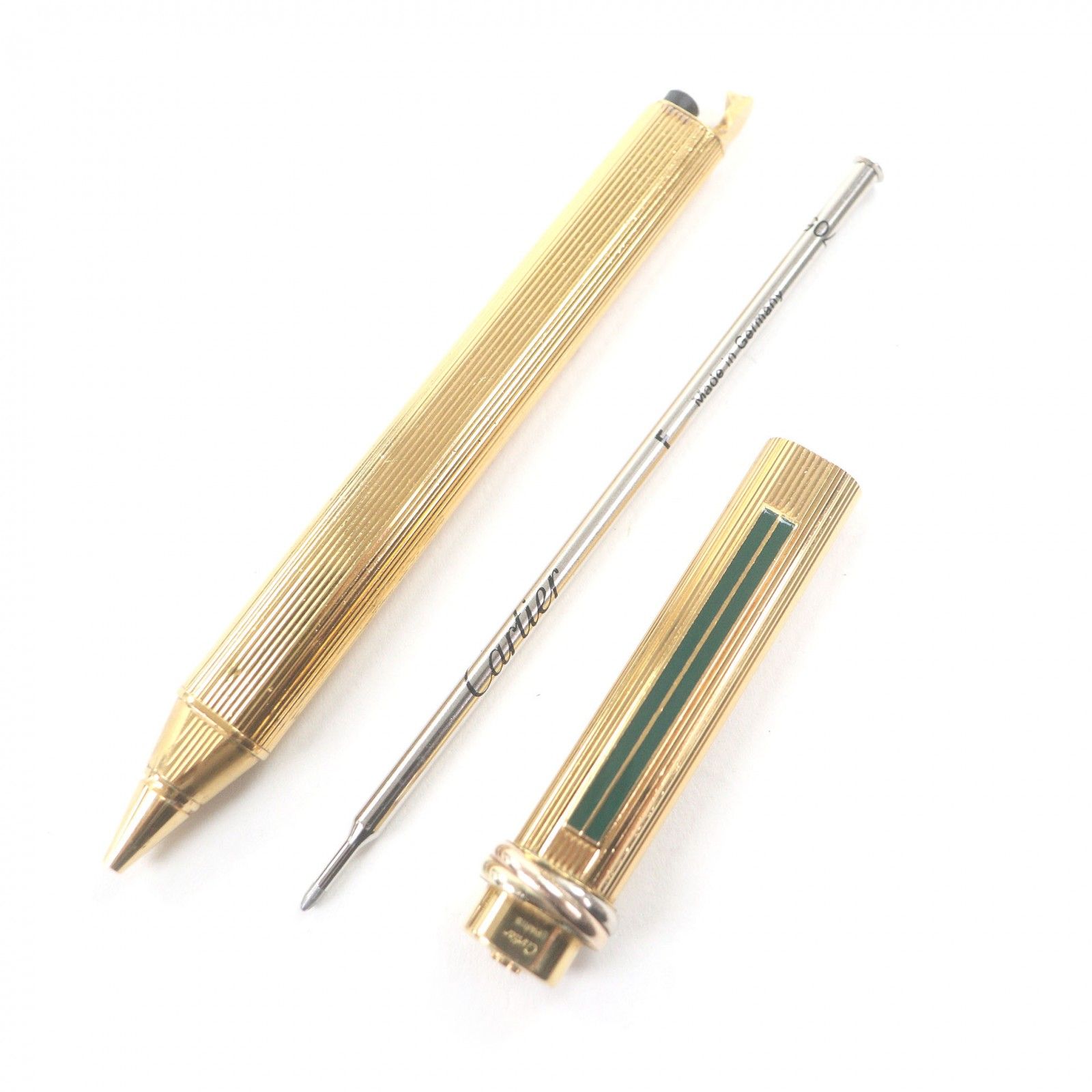 Cartier カルティエ ヴィンテージ トリニティ ストライプ柄 キャップ式 ボールペン ゴールド グリーン フランス製 メンズ 筆記 済み