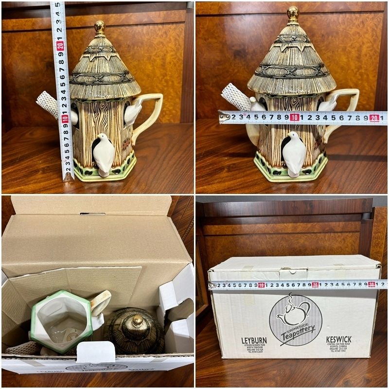 ◆商品名:イギリス製 ヴィンテージ 陶器製ポット ハト 小屋 金彩 Teapottery ティーポッタリー 英国 ティーポット 鳥 トリ オシャレ ユニーク 箱付き【RU1119-2】