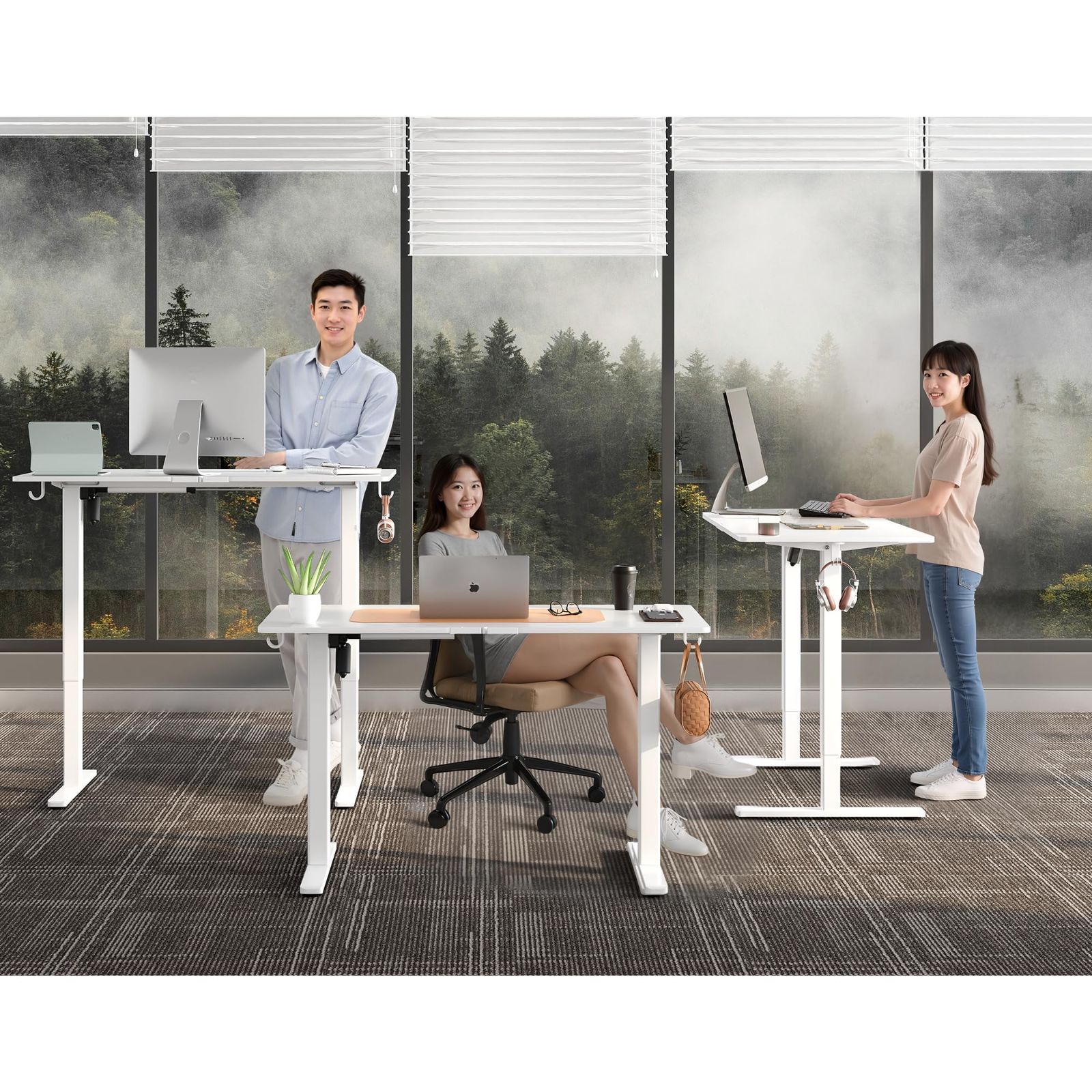 【取り付け簡単】 電動オフィス家具には、組み立てが簡単な詳細な説明書とマークされたハードウェアが付属しています。 2 つのフックにヘッドフォンやバッグを収納でき、作業スペースを整理整頓できます。