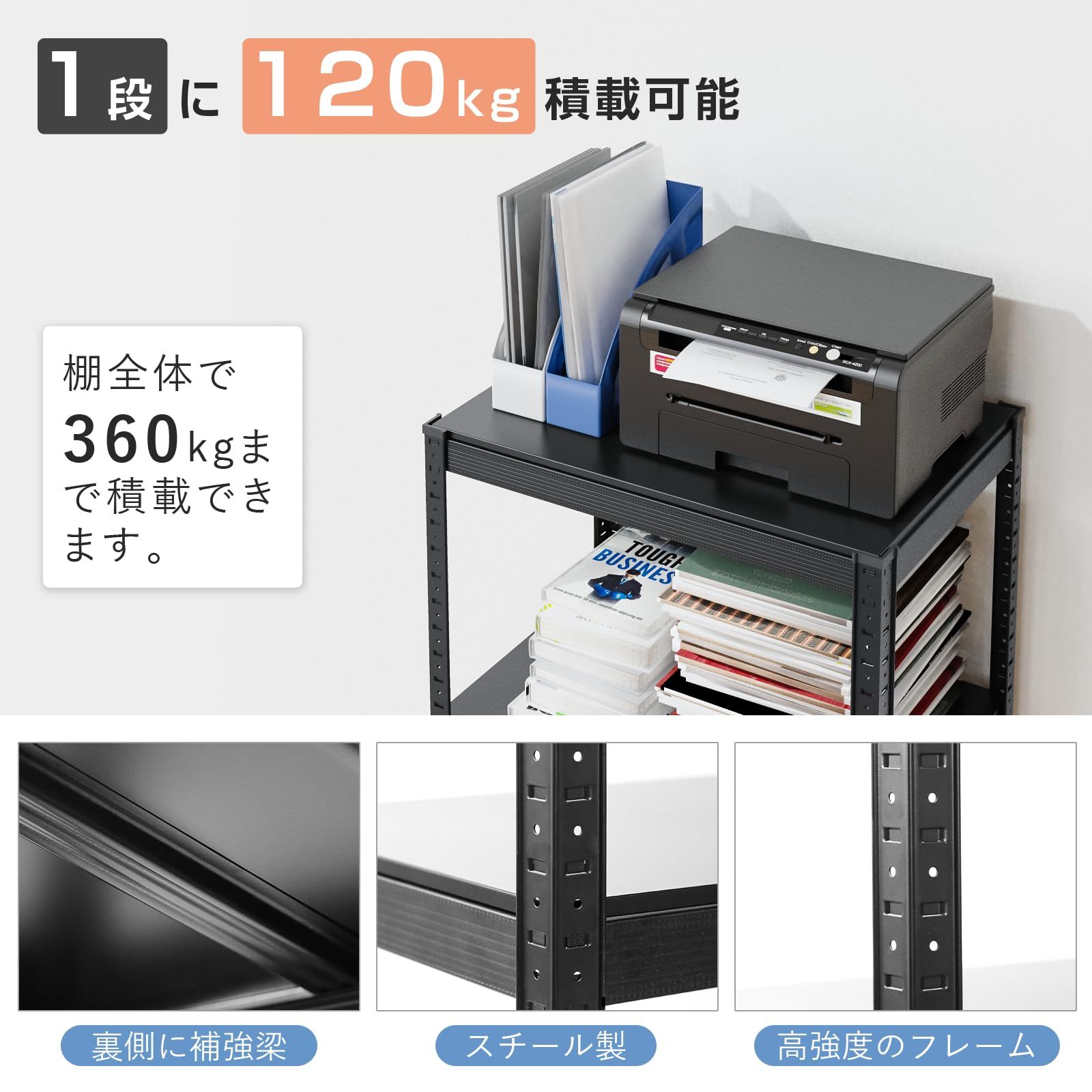 耐荷重:棚1段あたり120kg ※耐荷重は測定値であり保証値ではありません。