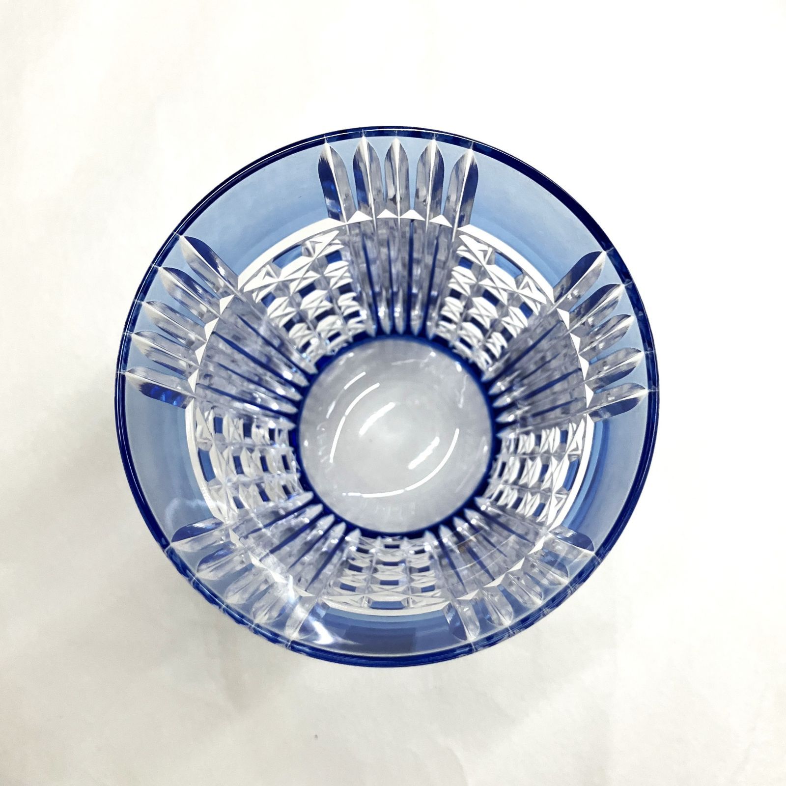 【江戸切子】 KAGAMI カガミクリスタル 五本溝 に 四角籠目 紋 焼酎グラス(ブルー)