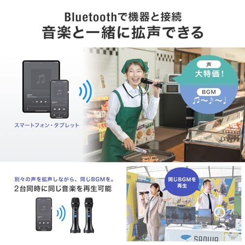 Bluetooth に対応しておりスマートフォンなどからの音楽再生が可能。同時に拡声出力もできるため カラオケ 感覚で使用することも可能です。
