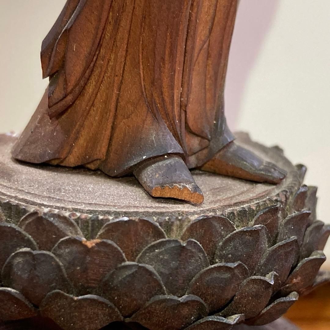 江戸時代 上彫 木彫 観音像 トコオ 高さ約15㎝ 東な6 0421