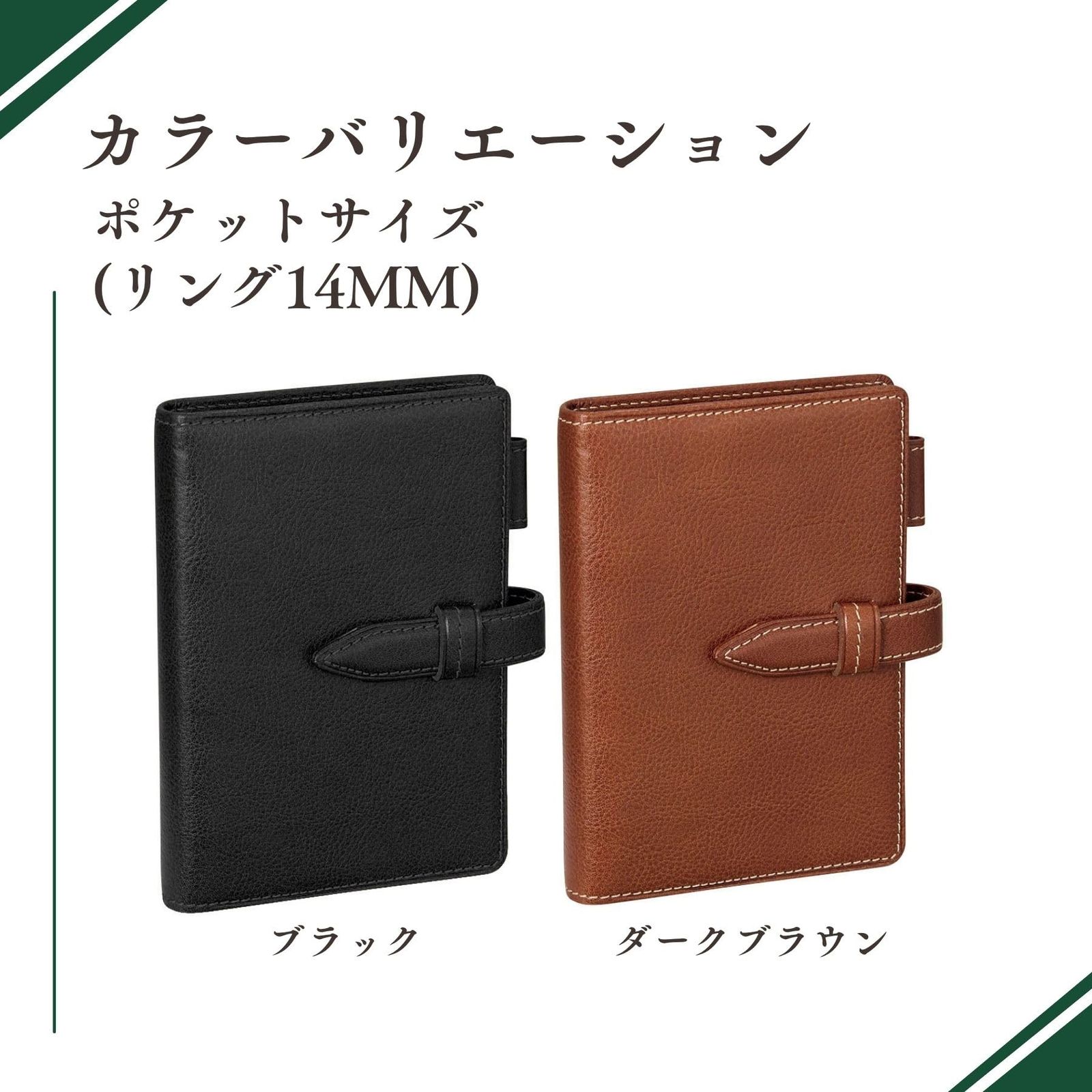【ポケットサイズ】・リフィルサイズ:W76×H126mm・リング径:14mm(リフィル収納枚数:約95枚)携帯に特化したポケットサイズ。メモ帳代わりやサブ手帳に最適