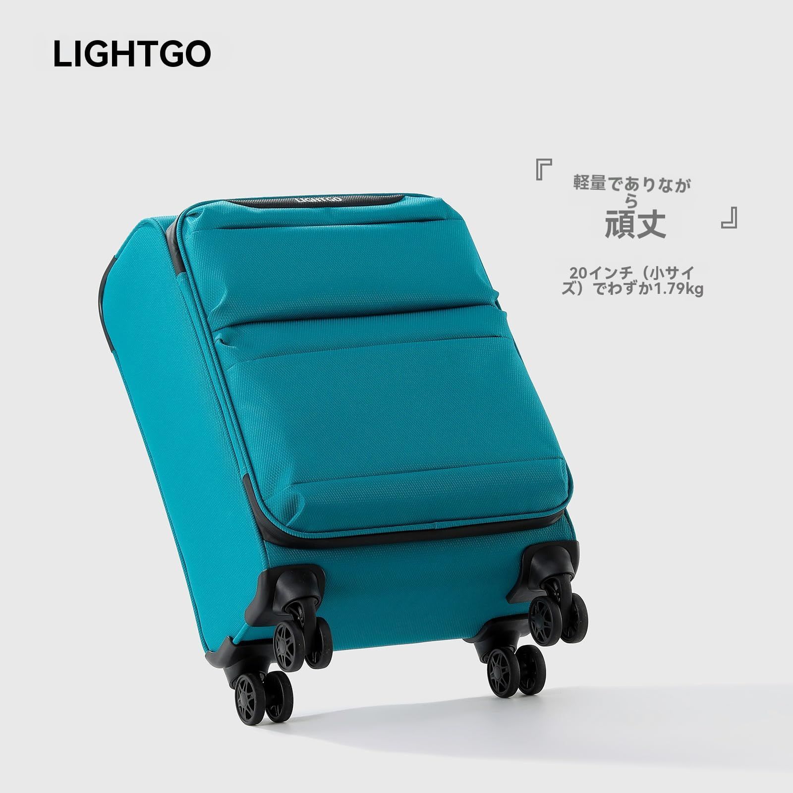 [LIGHTGO] ソフトサイドスーツケースコレクション 拡張可能なデザインに加え、スムーズな 360° スピナーホイールを搭載。週末の小旅行から長期滞在の旅行まで幅広く対応。 (シアン Lサイズ伸縮式(47.5*29.5*77cm/100L))