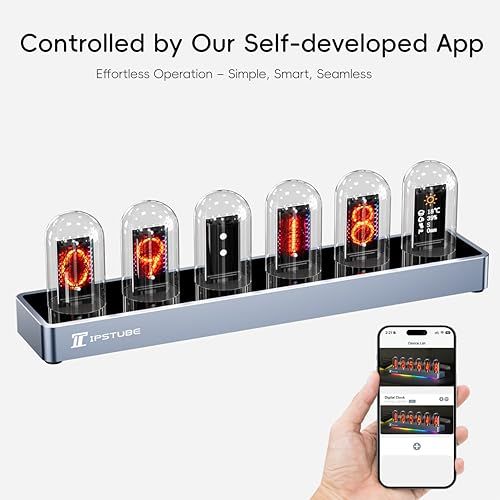 Nixie tube clock ニキシー管クロック デジタル写真アップロード機能 モバイルアプリ制御 時刻 天気 温度表示 ダイナミックRGB照明 耐久性アルミ合金ベースp b 8805435