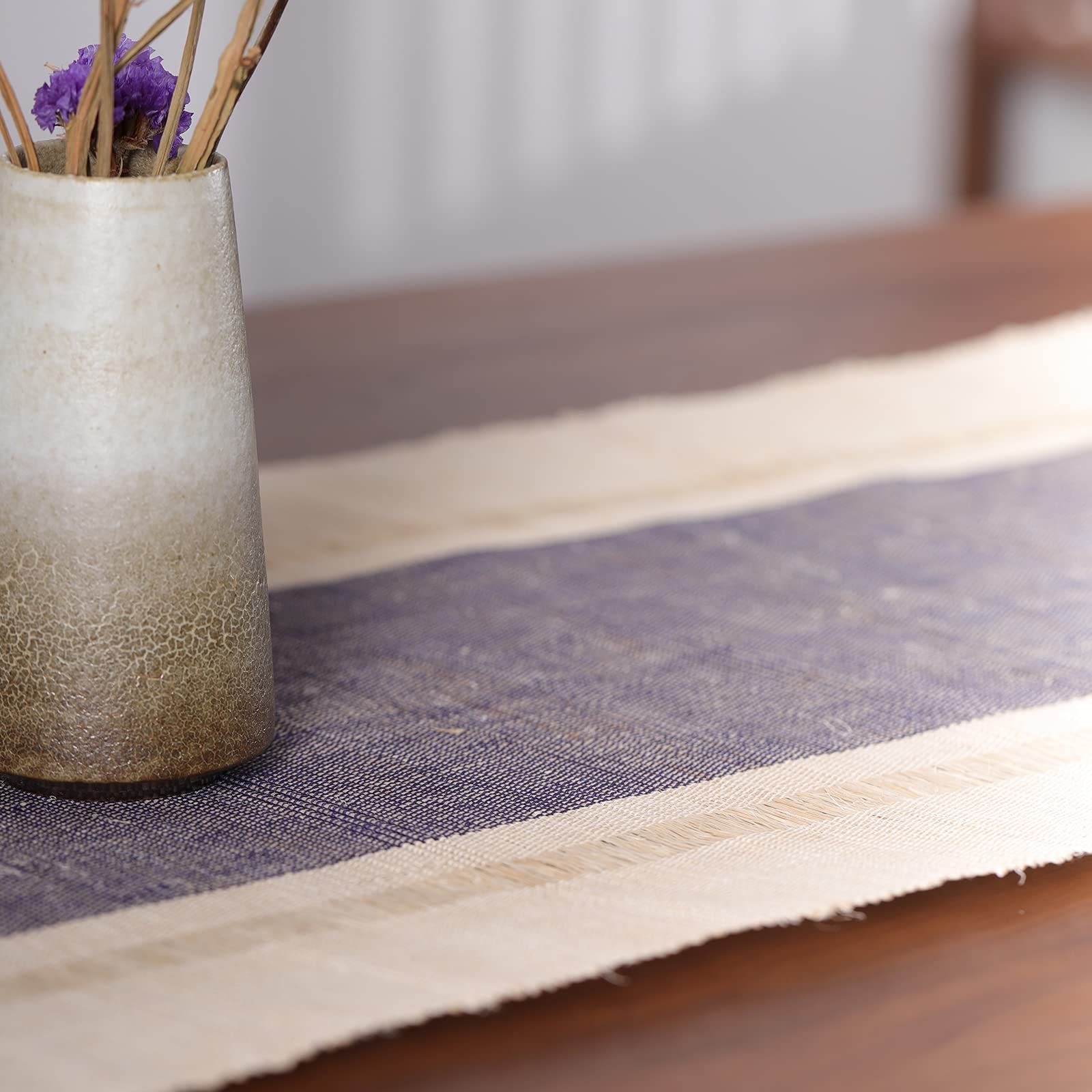 素朴な様式美:このテーブルランナーは「夏布」で製作されます。「夏布」は夏きものとして最高級品といわれ、シンプルで美しいです。部屋の飾りとして、素朴な印象を与え、自然を感じさせます。