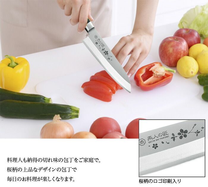 日本の美を象徴する桜をモチーフにした「桜吟シリーズ」の三徳包丁・ペティナイフ・シャープナーの豪華3点セット。刃はモリブデンバナジウム鋼を使用した本割込構造で、鋭い切れ味と耐久性を誇り、プロの要求にも応える品質です。桜柄のロゴが刻印されたデザイン性の高い包丁は、日常の調理をワンランクアップ。シャープナー付きで、いつでも切れ味を維持できる実用的なセット。燕三条の職人による確かな日本製で、ギフトにも最適です。