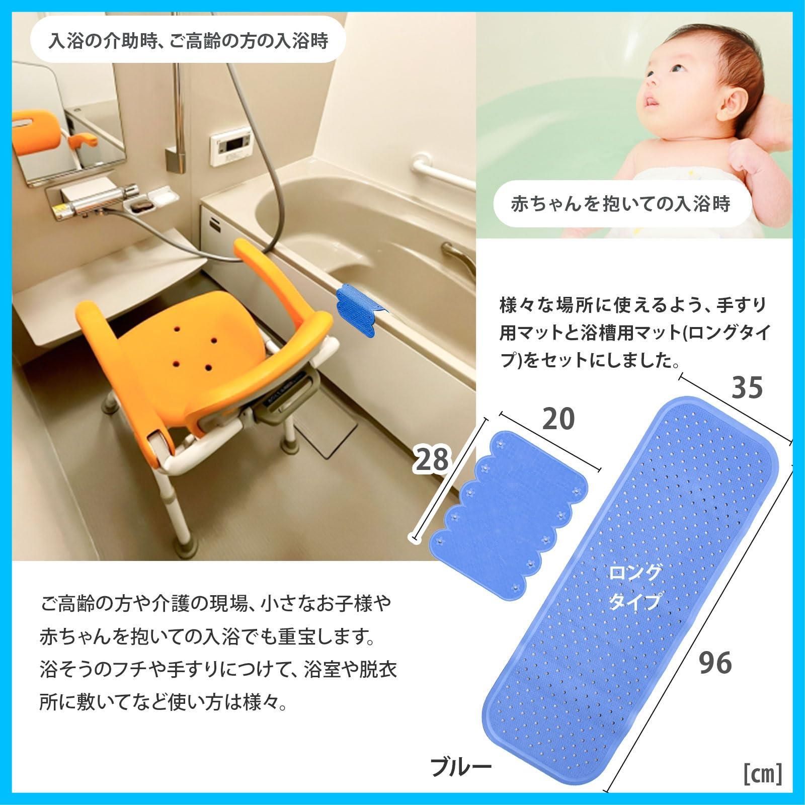 浴槽マット ロング スベリを防ぐ 手すりマット セット 滑り止め 35 96 cm 浴槽 ブルー 浴槽内 お風呂 滑り止めマット 長め