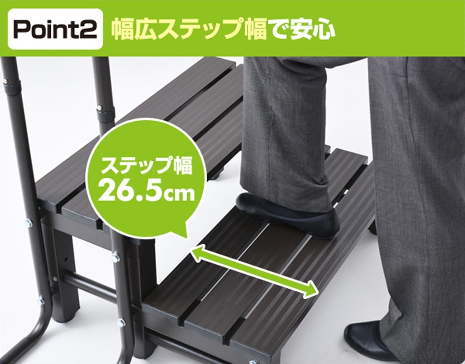 ●縁側、ベランダ等の段差を解消できるステップに取っ手が付いた取っ手付き2段踏み台。