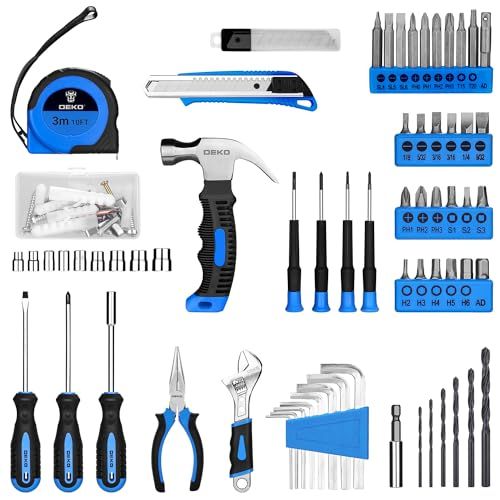DEKO 8 V電動ドリル付き 126点組 工具セット ホームツールセット 家庭用 ツールセット 日曜大工 DIYセット 作業工具セット 家具の組み立て 住まいのメンテナンス用 修理道具セット 便利な収納ケース付き ブルー d 7 ab 0 40