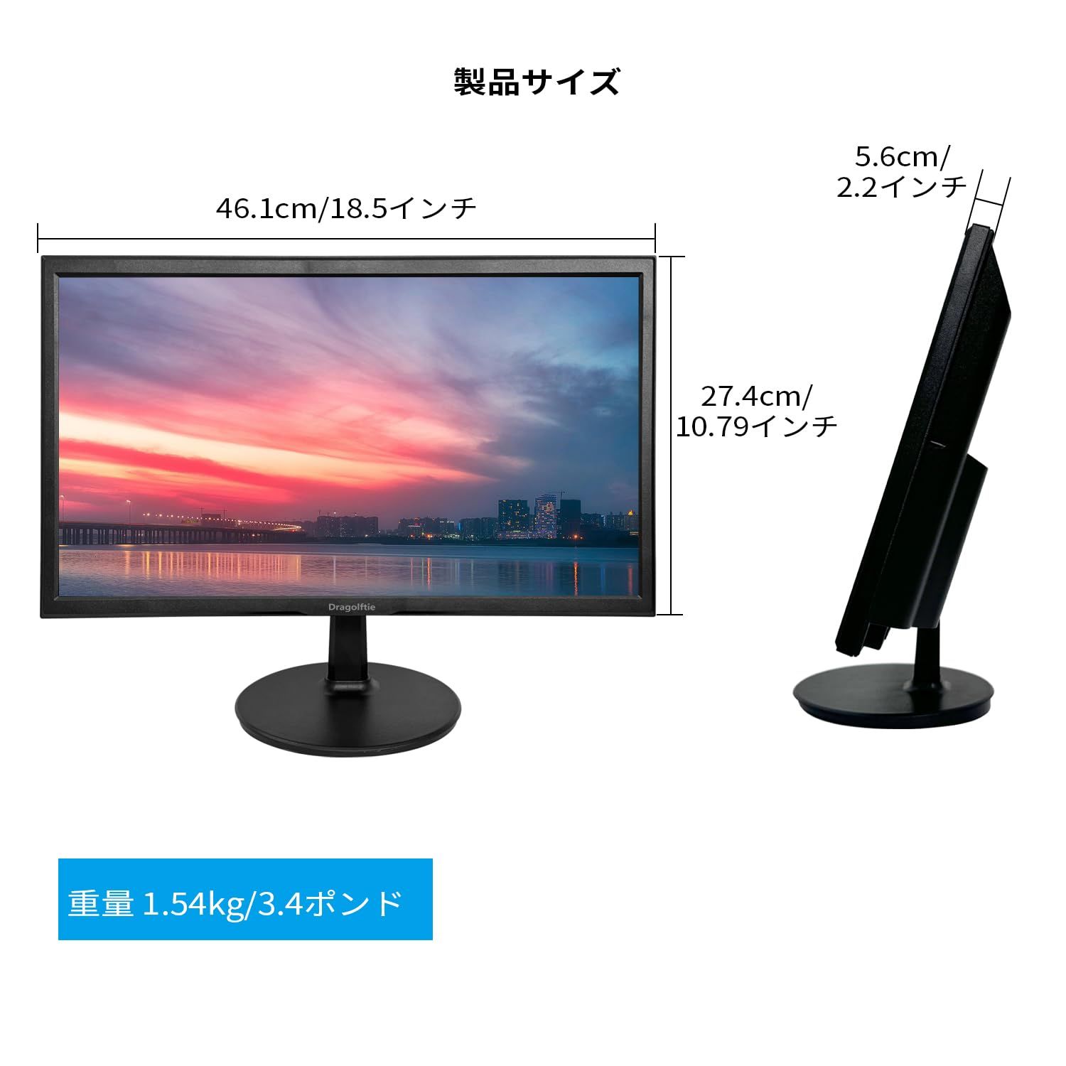 19.5インチPCモニター:1. 画面保護フィルム付きモニター。2. モニター内蔵スピーカーを使用する前に、必ずHDMIケーブルでモニターのHDMIポートに接続し、音声出力がモニター内蔵スピーカーに設定されていることを確認してください。